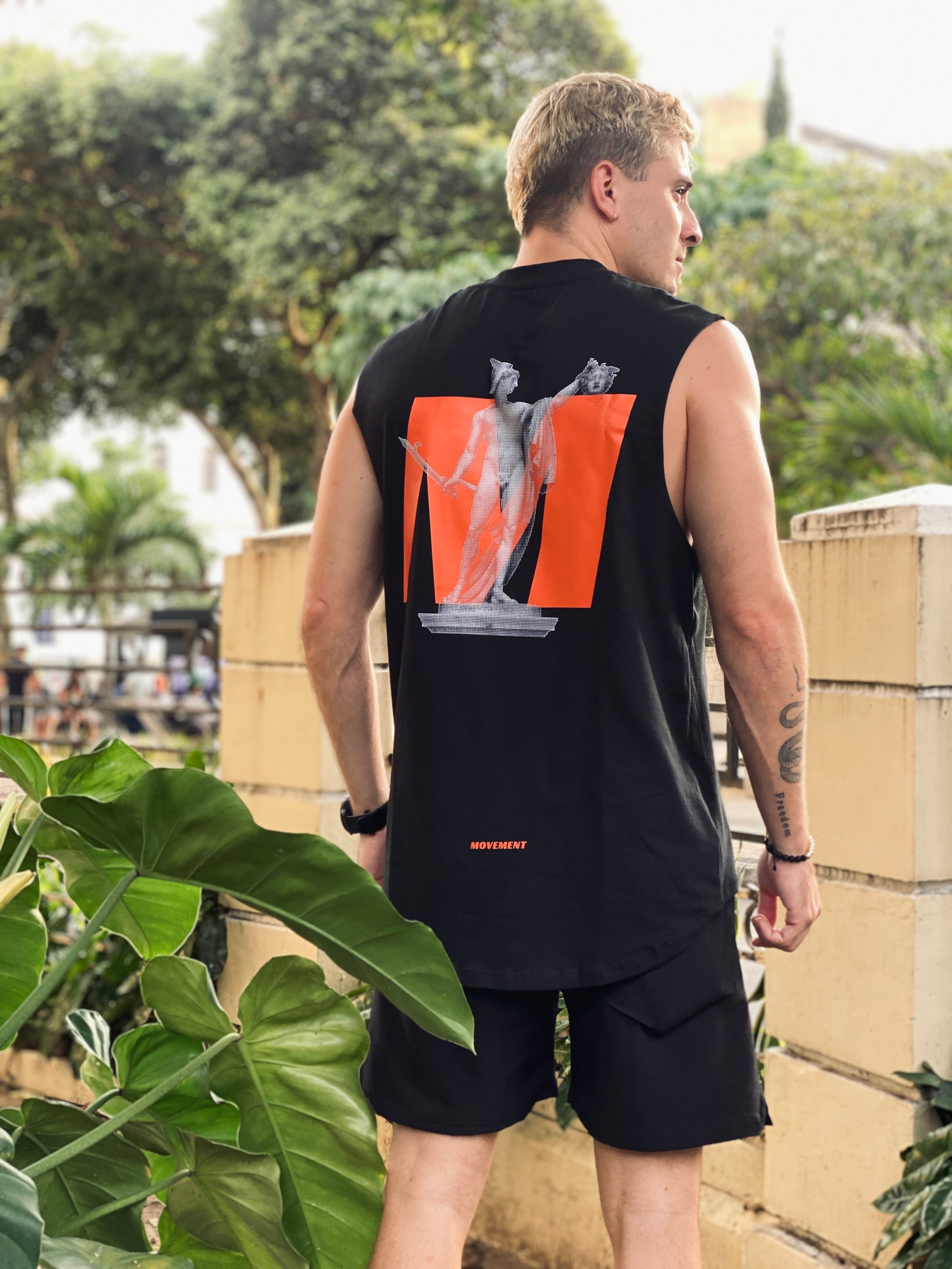 PERSEO simboliza la valentía y determinación de quienes enfrentan desafíos sin miedo. Esta camiseta con un fit oversized sin manga, nuestra best seller, refleja esa energía con un ajuste perfecto, confeccionado en algodón premium para máxima comodidad y estilo.